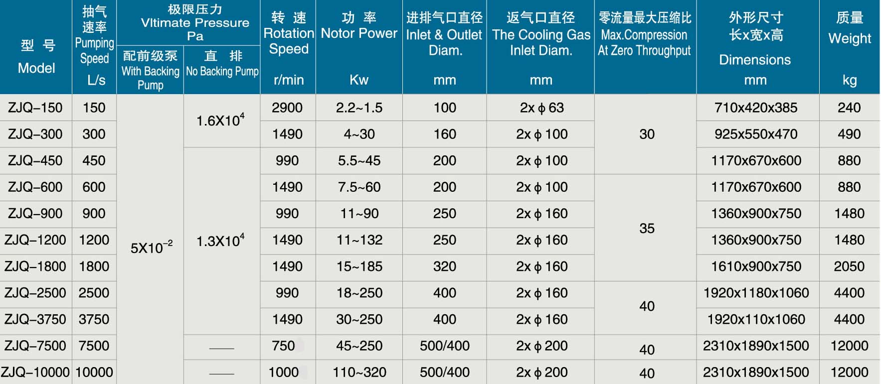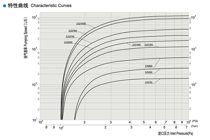 注:ZJQ-7500/ZJQ-10000羅茨真空泵的進排氣口法蘭尺寸不相同,上表給出的是進氣口法蘭尺寸