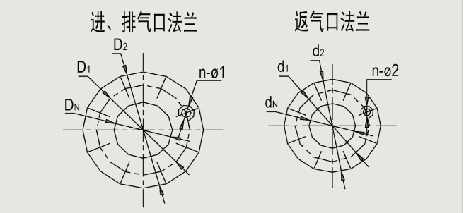 注:ZJQ-7500/ZJQ-10000羅茨真空泵的進排氣口法蘭尺寸不相同,上表給出的是進氣口法蘭尺寸